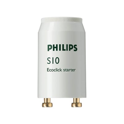 - S10 Ecoclick-startere er velegnede til 220/240 V, 4-65 W enkeltforkobling.