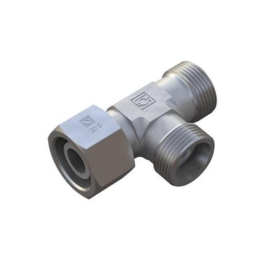 Hydraulisk T-stykke til direkte hydraulikrørs montage samt omvendt formonteret omløber på den ene side til direkte montage på fittingskrop. Leveres uden omløbere og skæreringe. Se montagevejledning.