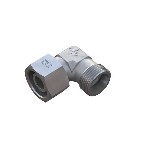 Hydraulisk stilbar vinkel forskruning med omvendt formonteret omløber på den ene side og rørtilslutning på den anden. Leveres uden omløber og skærering.
