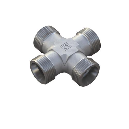 Stauff FI-K samler kryds i stål med zink/nikkel overfladebehandling og gevind rørende M22 x 1.5. Denne hydrauliske kryds er designet til direkte rørmontage og leveres uden omløbere og skæreringe.