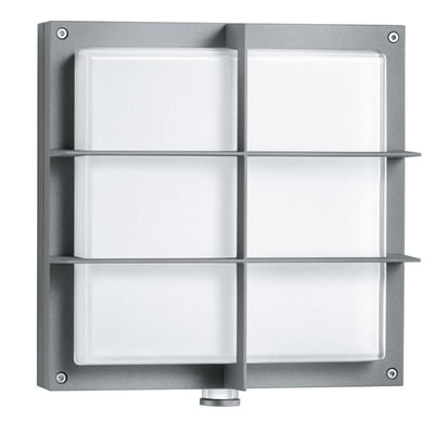Robust og energieffektiv udendørs LED-lampe med sensor. Aluminiumsfod, slagfast PMMA-skærm og gitterbeskyttelse. 576 lm lys fra kun 8,5 W. Infrarød minisensor med 7 m rækkevidde.