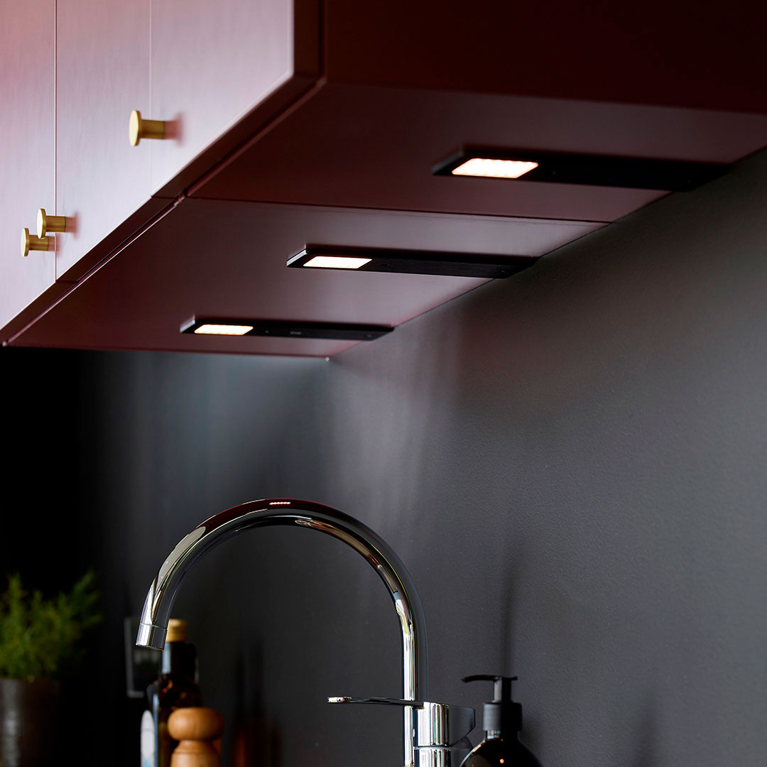 Stella spottene har et fladt og stilrent design i sort med PMMA skærm. Med on/off/dim knapper kan du nemt tænde, slukke og dæmpe lyset direkte på spottet.