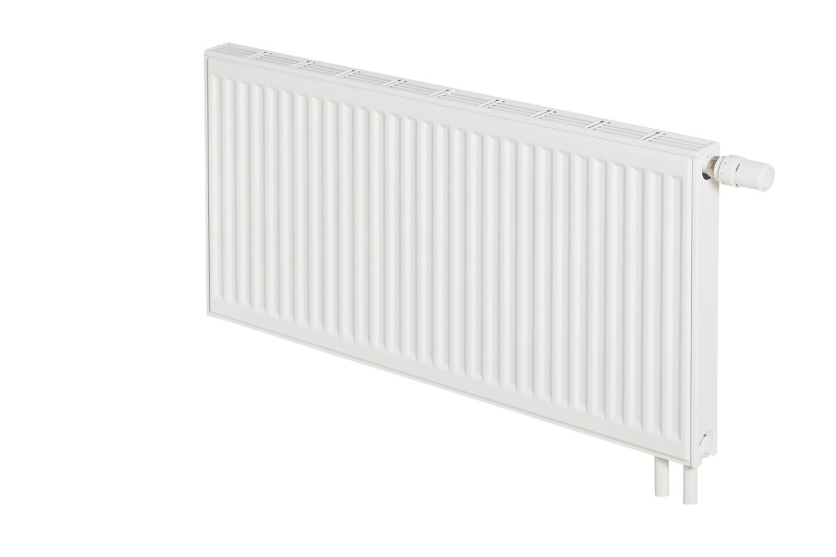 Novello er lukket med gavle og en dekorativ toprist, som passer godt til vores moderne og enkle boligstil. Novello er udstyret med en pre-installeret, justerbar ventilindsats (uden termostat), der sørger for optimal regulering samt optimal effektivitet. Den er som standard, fabriksmonteret på højre side af radiatoren. Typer 21-33 er vendbar.