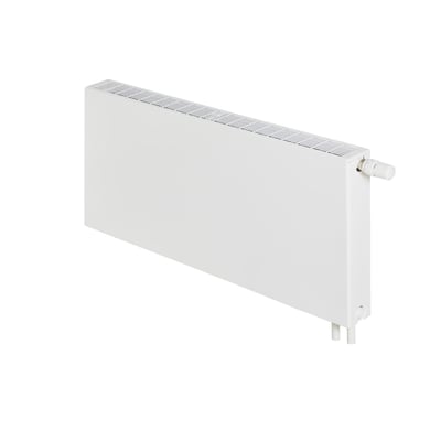 27. Stelrad Compact All In Type 21 radiator i hvid, 300 mm høj og 400 mm lang, med termostat på højre side.Stelrad Compact All In Type21, H300 mm x L400 mm