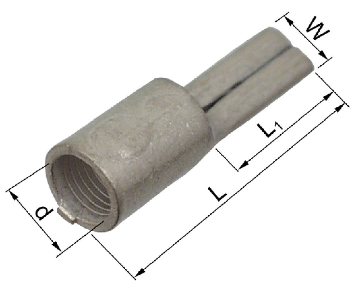 Uisoleret stiftkabelsko B95SR i Cu 99,95%, fortinnet. Til 95mm² Cu-leder. Værktøj til sekskantspresning: V600/V611/PVX611/T2600, V1300/V1311-A/PVX1300/DV130...