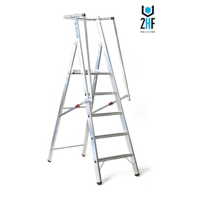 2HF-Platformstige med integreret gelænder og stor platform. Ekstraskridsikre trin og sikkerhedsstrop sikrer god op- og nedstigning. Kan opgraderes til EN 131-7.