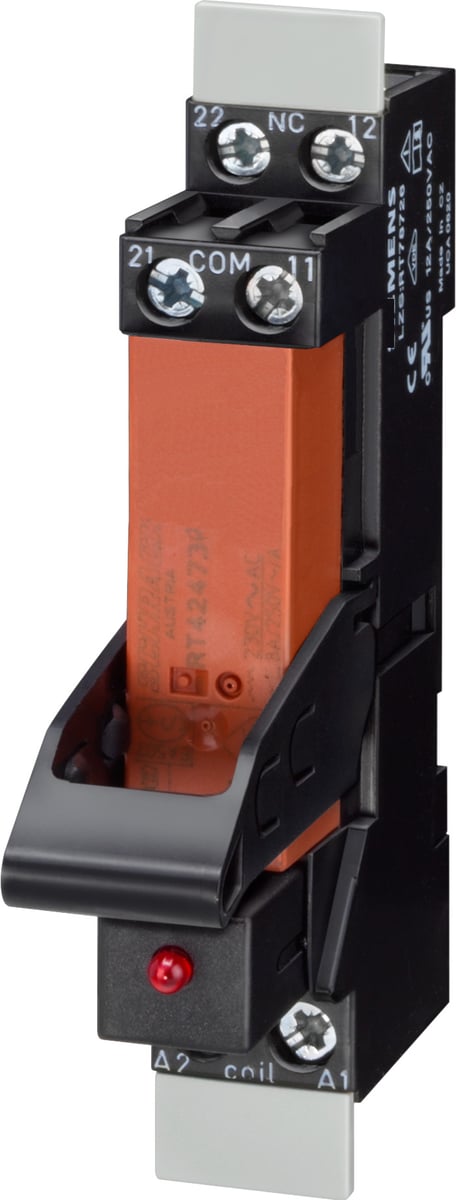 Koblingsrelæerne har værktøjsfri ledningsføring og vibrationssikker forbindelse takket være push-in fjederbelastede klemmer. Baser med logisk adskillelse muliggør nem ledningsføring. Koblingskapaciteten er testet i henhold til A-15 og DC-13. Takket være hårde guldbelagte kontakter sikres optimal interaktion med elektroniske kontroller.