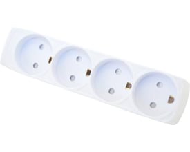 Stikdåse med 8 runde udtag og jord, hvid