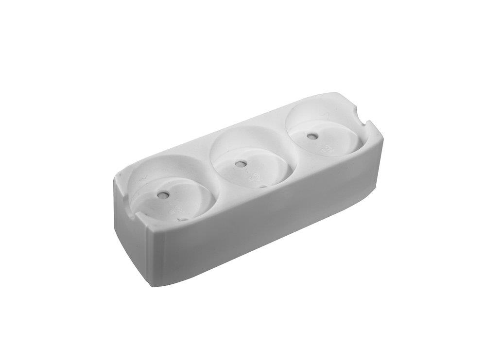 Stikdåse, 3 runde udtag, med jord, 16A, hvid