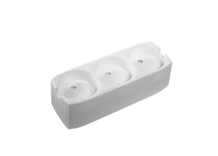 Stikdåse med 3 runde udtag, uden jord, 16A, hvid
