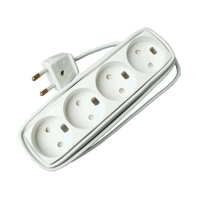 Stikdåse med 4 udtag og 2,5 meter ledning, børnesikret og genmonterbar. Ideel til hjemmet.