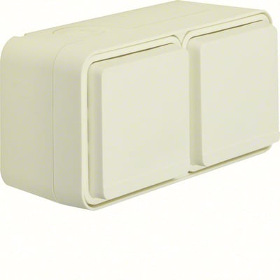 Berker dobbelt stikkontakt med underlag, vandret, hvid, 16A, 250V, IP55. Med plug-in klemmer og ledningsførte indsatse.