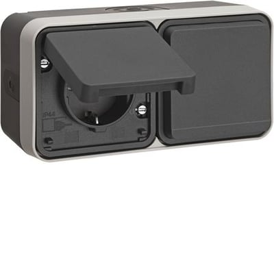 Dobbelt stikkontakt fra Berkers W.1 serie, ideel til vådrum og udendørsbrug. Leveres komplet med underlag, indsats, ramme og afdækning. IP55 klassificeret.