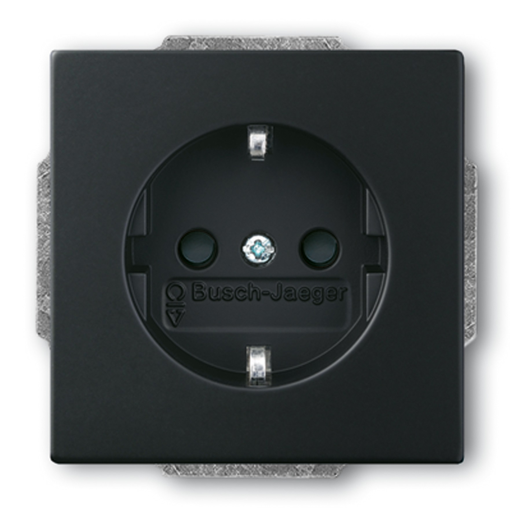 ABB Impressivo stikkontakt i mat-sort. Med Schuko-udtag og en 16A kapacitet, ideel til moderne installationer.