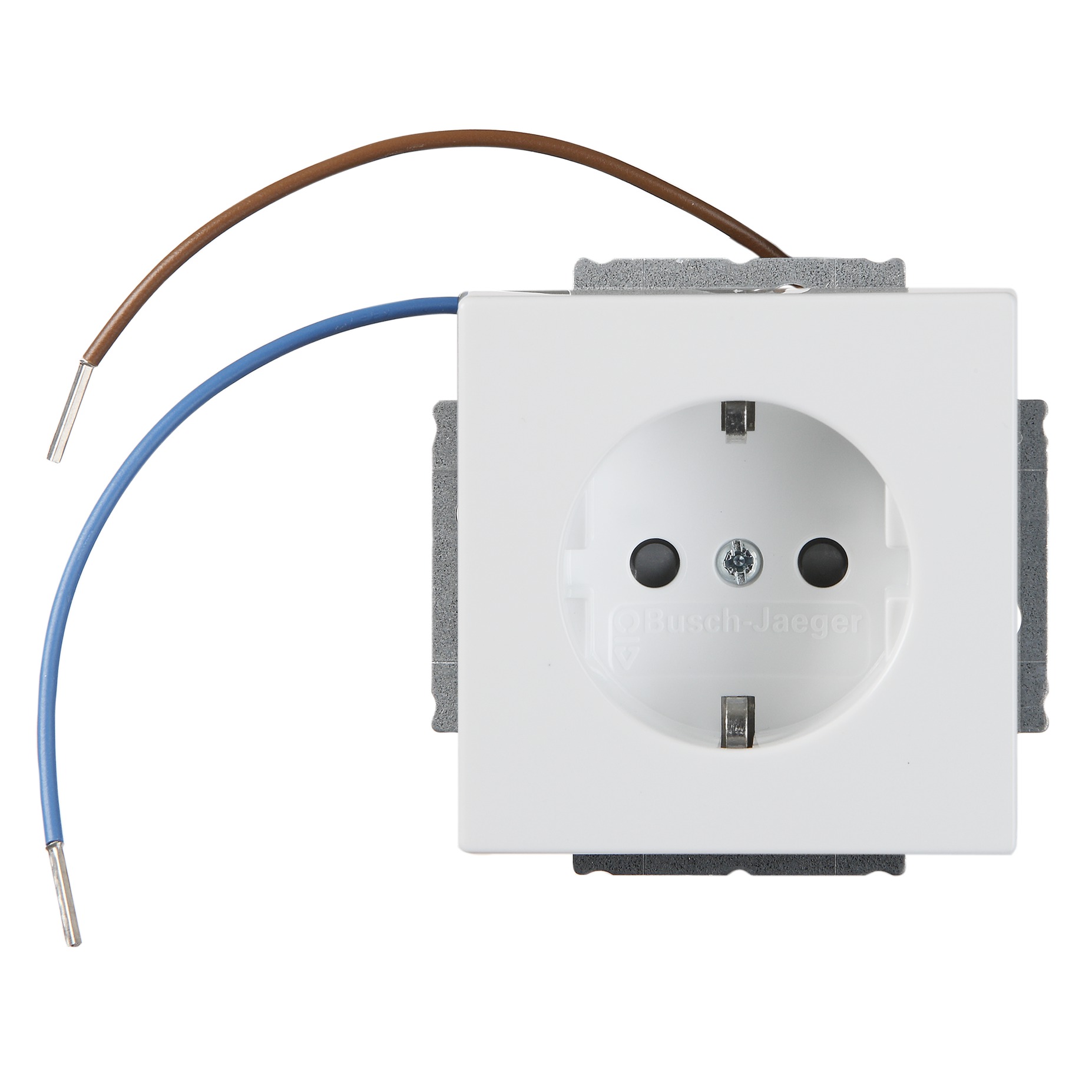Enkelt stikkontakt med LED-lys (semi-komplet = indsats+afdækning), 16A, 1M, hvid. Skrueløse terminaler til max. 2 stive 2,5mm2 ledninger.