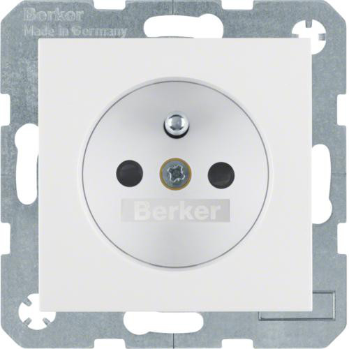 Hvid mat stikkontakt med pinjord til Berker S.1/B.3/B.7 serierne. Hævet kontaktpunkt.