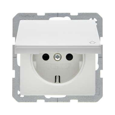 Stikkontakt fra designserien Q1 med klaplåg i hvid.