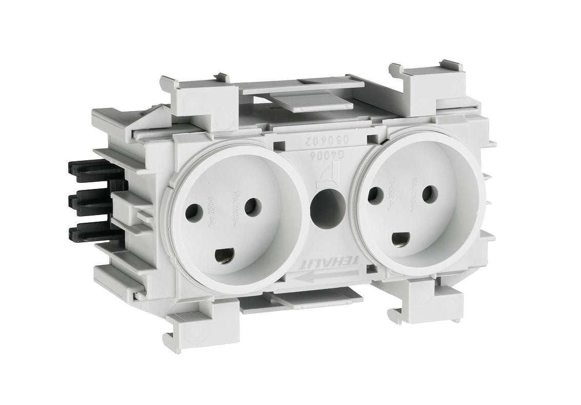 Frontmonteret stikkontaktenhed til Hager kanaler og DA stander med 80 mm låg. Forsynes via Wago Winsta kabler eller 1,5 og 2,5 mm² installationskabler.