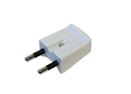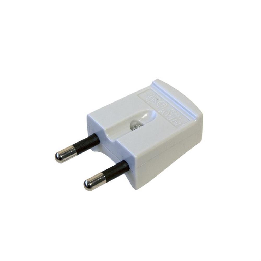 Forstærket flad stikprop uden jord, 16A 250V IP20, i polycarbonat og grå farve.