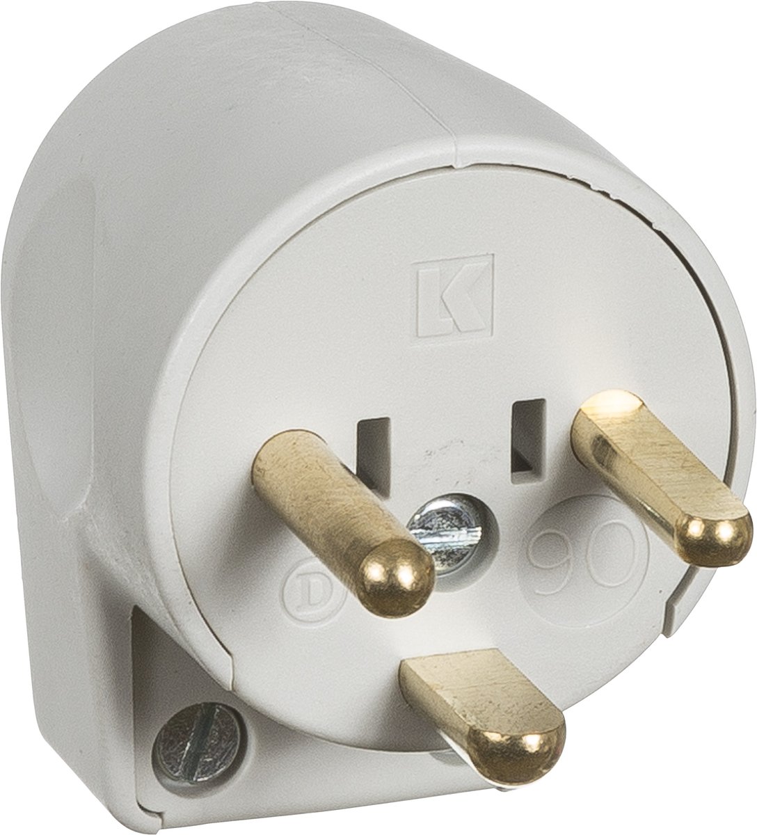 Vinkelstikprop til hospitalsbrug, 16A. Med isoleret aflastningsbøjle til ledninger Ø2,5-10,5 mm.