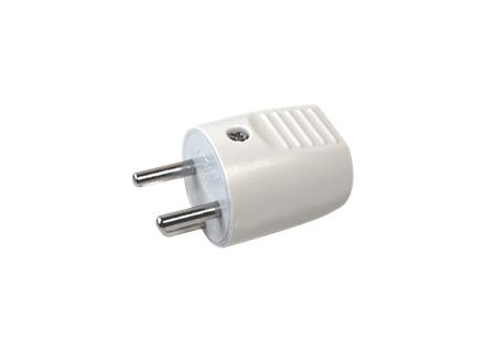 Forstærket rund stikprop med jord, 13A 250V IP20, i hvid polycarbonat.