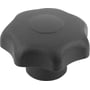 Stjernegreb DIN6336 med bøsningshul D: 10, D1: 50, model H. Fremstillet i sort termoplast med bøsningshul i stål og sort cap.