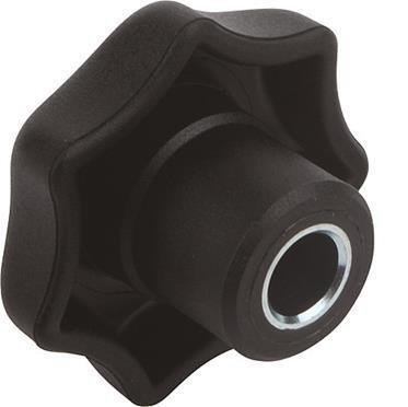 Dette stjernegreb DIN6336 er udført i sort termoplast med et bøsningshul i stål. Det galvaniserede og blå kromatiserede bøsningshul sikrer høj kvalitet og holdbarhed.