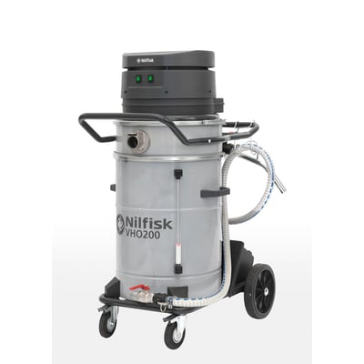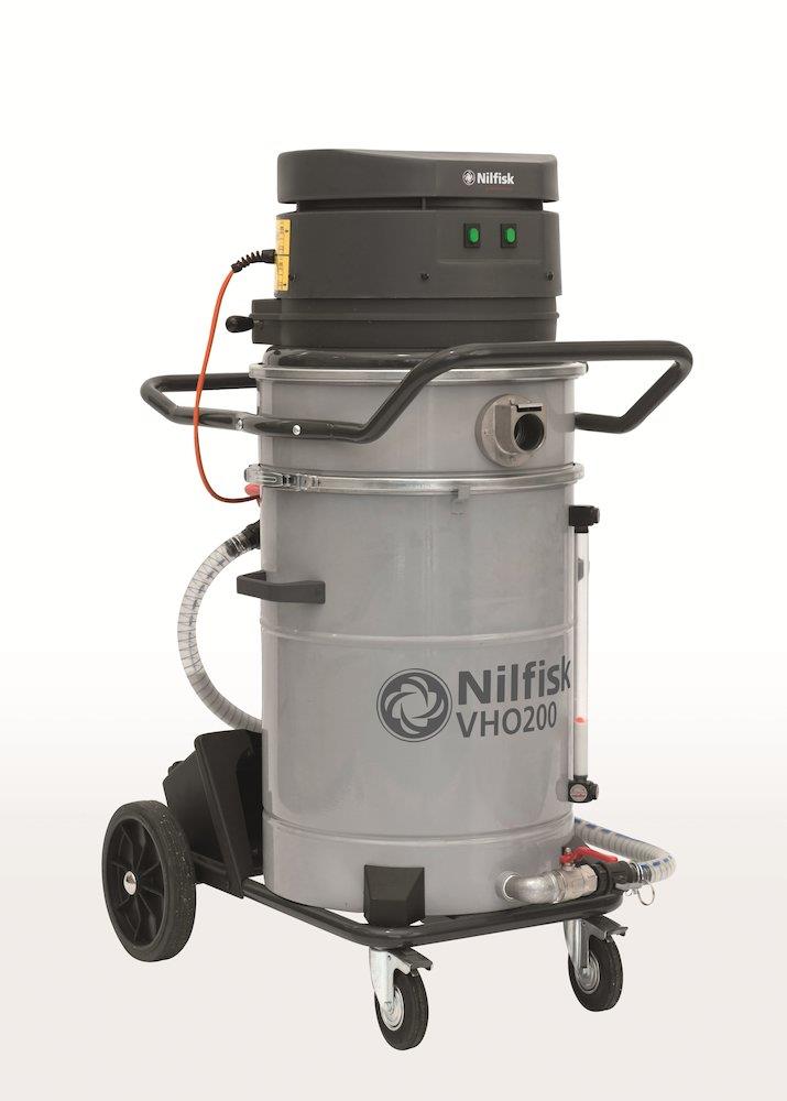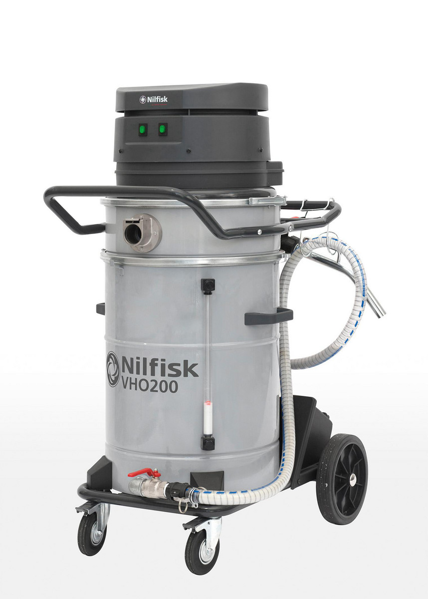 Nilfisk VHO200 er en vådsuger med 2 x 1200 W motor, designet til opsugning af væske og olie/spåner. Luftflowet bruges til at presse væsken ud gennem aftapningshanen. Ved brug af slange/pistolkit kan væsken fyldes direkte i en ekstern beholder.