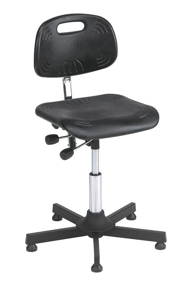 Stolen er behagelig at sidde på og nem at indstille. Sæde og ryglæn er fremstillet af formstøbt polyurethan, et komfortabelt og praktisk materiale, der gør stolen ideel som industristol. Den er velegnet til brug i ekstreme miljøer og er let at rengøre.