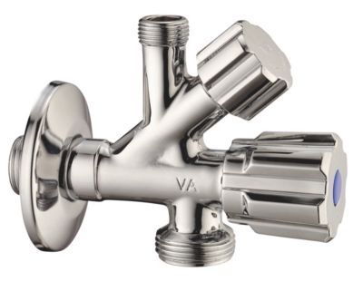 Dobbelt stopventil, 1/2" x 3/8" x 3/4"