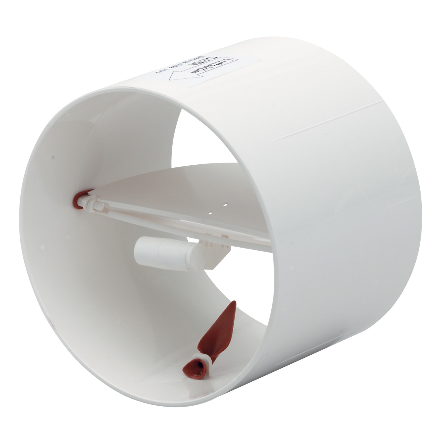 Dobbeltvirkende stormsikring, regulerer lufttilførslen ved hård vind og lukker helt ved storm. Monteres i modulrør Ø81/85 mm.