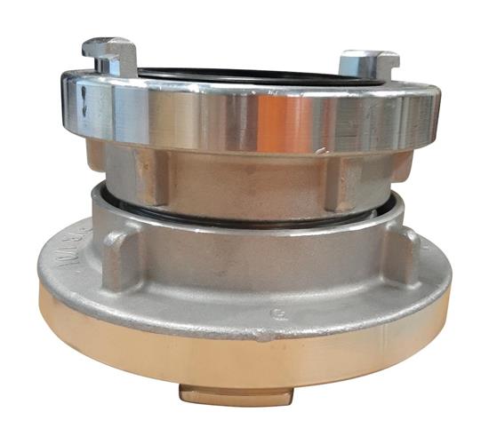 Storz overgangsstykke i aluminium fremstillet iht. DIN-forskrifterne. DIN koblingen adskiller sig fra "Industri koblingen" ved at have smedet knager/kroge og ikke støbte.