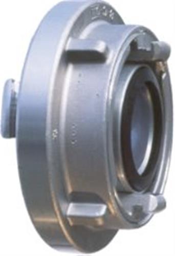 Storz overgangsstykke i aluminium. Koblinger er fremstillet iht. DIN-forskrifterne. DIN-koblingen adskiller sig fra "Industri-koblingen" ved at have smedet knager/kroge og ikke støbte. Til granulattransport anvendes hvid koblingspakning.