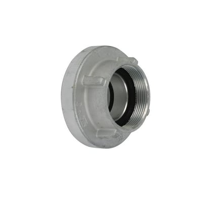 Storz kobling i aluminium med muffe og indvendigt rørgevind iht. ISO 228. DIN-koblingen adskiller sig fra "Industri koblingen" ved at have smedet knager/kroge og ikke støbte.