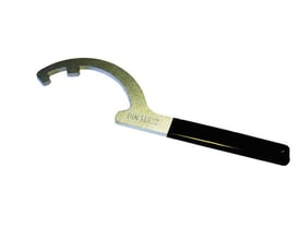 Storz kobling i aluminium med muffe (med indvendigt rørgevind iht. ISO 228). Koblingerne er fremstillet iht. DIN-forskrifterne. DIN koblingen adskiller sig fra "Industri koblingen" ved at have smedet knager/kroge og ikke støbte. Til granulattransport anvendes hvid koblingspakning.