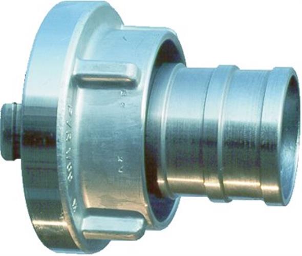 Storz kobling i aluminium med lang hals (slangestuds). Koblingerne er fremstillet iht. DIN-forskrifterne. DIN koblingen adskiller sig fra "Industri koblingen" ved at have smedet knager/kroge og ikke støbte.