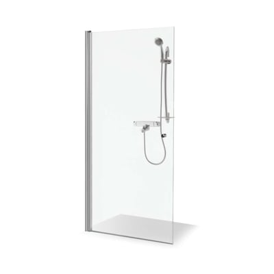 Viktorija 1/2 brusedøren er en enkelt svingdør på 90x200 cm med krom profiler og 6 mm klart glas. Justerbar profil på 1,3 cm giver fleksibel montering.
