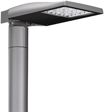 Vej- og pladsarmaturet er udstyret med en vendbar flange, der muliggør montering på master med en diameter fra Ø 42 mm til Ø 60 mm. Armaturets hus er fremstillet af optisk aluminium, mens de rørformede arme er lavet af varmgalvaniseret stål. Det hærdede cover er 5 mm tykt og sikrer holdbarhed. Designet forhindrer lysstrømmen i at sprede sig opad.