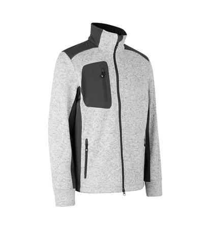 Smart strikfleece cardigan i melangefarver med kontrastbesætninger. To-vejs lynlås, justerbar snøre i bund og tre lynlåslommer.