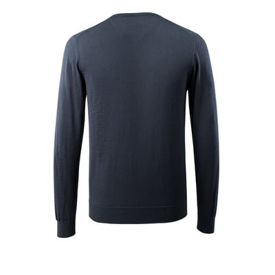 Komfortabel og slidstærk striktrøje fra Mascot i mørk marineblå. Fremstillet af 50% merinould og 50% akryl. OEKO-TEX®-certificeret.