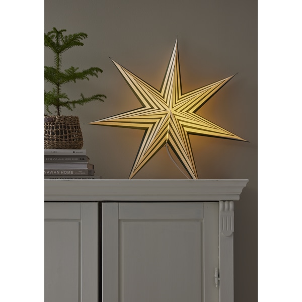 Stjernen leveres uden lyskilder og er ikke udstyret med funktioner som timer, sensor, sne eller musik, hvilket understreger dens enkle og klassiske design. Den er nem at folde ud og hænge op og bidrager til en festlig stemning i hjemmet.