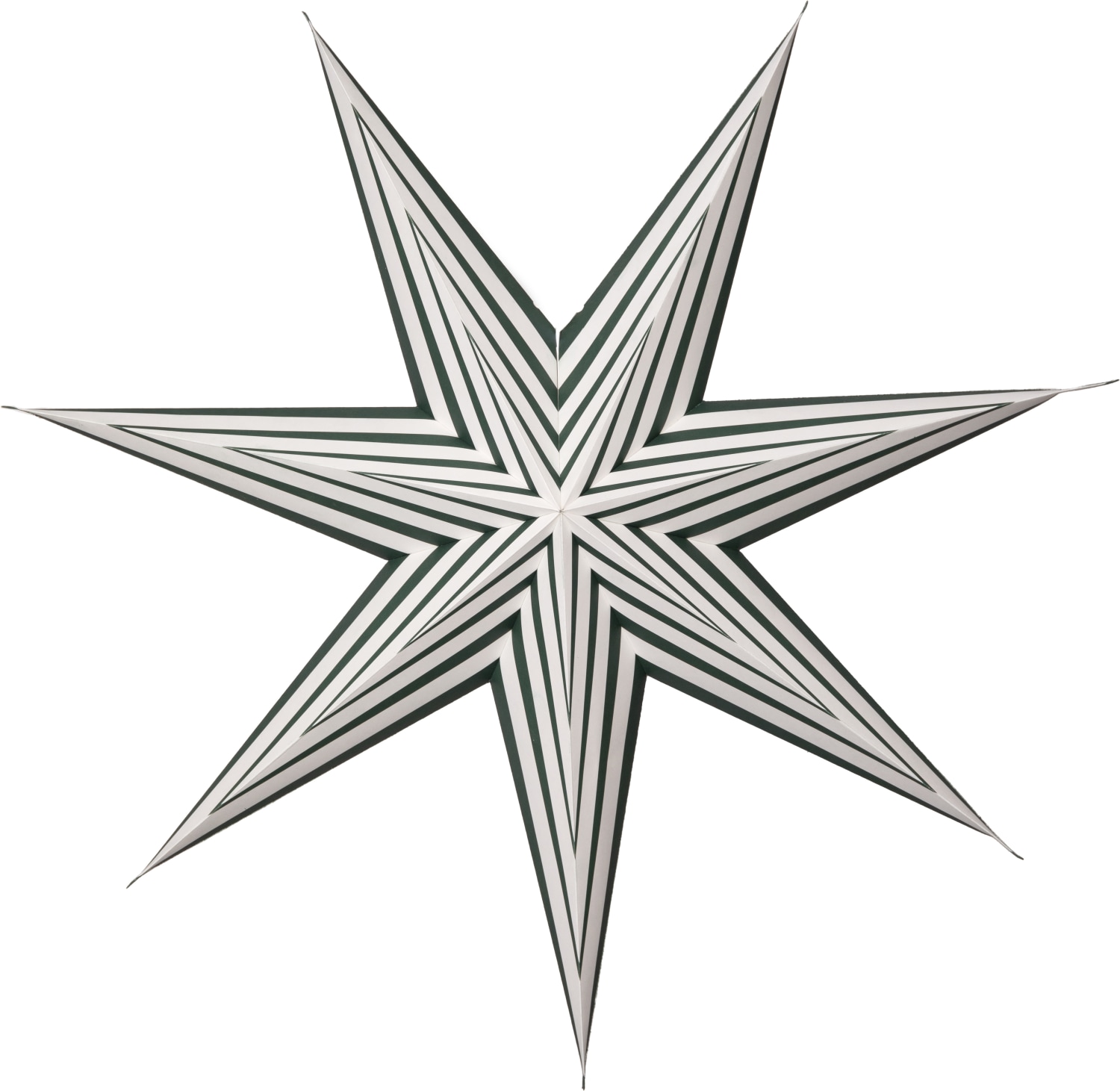Dekorativ Stripe papirstjerne fra Star Trading i grøn, perfekt til indendørs brug. Med en højde på 60 cm er den ideel som vinduesdekoration.