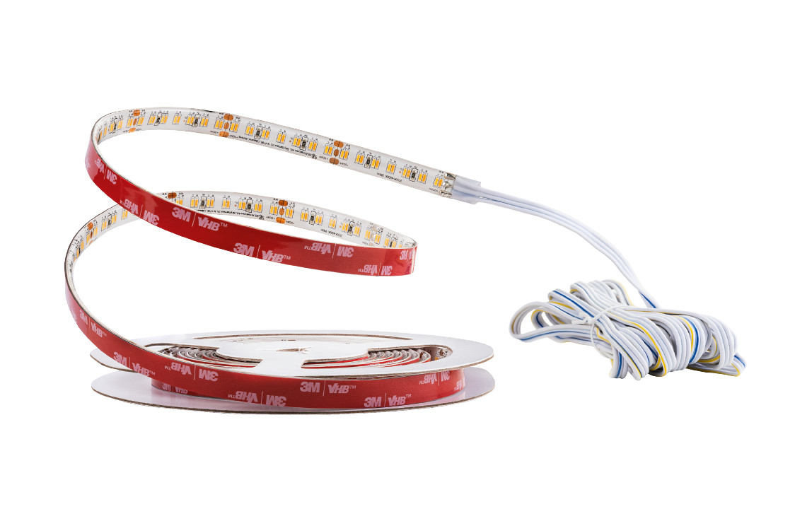 Systemet leverer førsteklasses lyskvalitet med høj virkningsgrad og en fremragende farvegengivelse (Ra>90). LED-strippen er IP54-klassificeret, hvilket sikrer beskyttelse mod støv og vandsprøjt. Den er udstyret med monteringstape på bagsiden og forudinstallerede tilslutningskabler for nem installation.