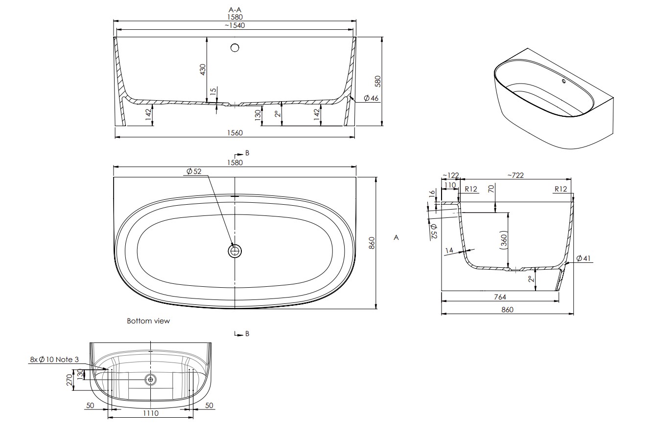 Den ovale form og den matte hvide finish bidrager til et luksuriøst udseende, der passer ind i de fleste moderne badeværelsesindretninger. Med en længde på 1580 mm og en bredde på 860 mm tilbyder det god plads til en afslappende badeoplevelse. Den indvendige kar dybde på 430 mm giver en komfortabel dybde for nedsænkning.
