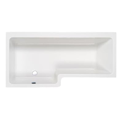 Strømberg Quantum brusebadekar i støbt hvid sanitetsakryl. Med integreret bruseområde til venstre og afløb i enden. Mål: 1700 x 700/850 mm. Kapacitet 265 liter.