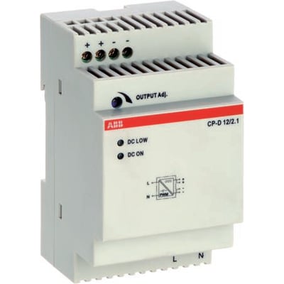 1-faset switch-mode strømforsyning i CP-D serien. 100-240V AC indgang, 12VDC udgang med 2,1A og 30W effekt.