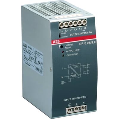 Denne 1-fasede switch-mode strømforsyning fra ABB er en del af den effektive CP-E serie. Den tilbyder en pålidelig og stabil strømforsyning til dine enheder.