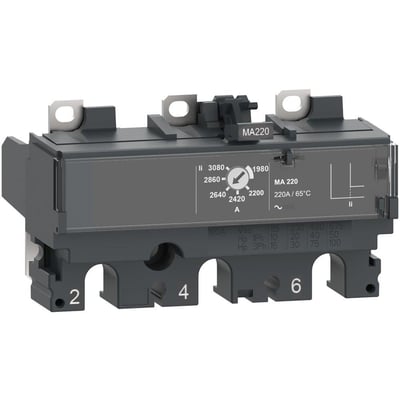 3-polet 3d magnetisk strømrelæenhed til ComPacT NSX 100/160 maksimalafbrydere. Optimal til motorbeskyttelse med justerbar, momentan magnetisk beskyttelse mod kortslutning.