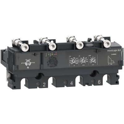 MicroLogic 2.2 er en 4-polet elektronisk strømrelæenhed til ComPacT NSX 250 maksimalafbrydere. Med 250A, justerbar overbelastningsbeskyttelse og kortslutningsbeskyttelse.