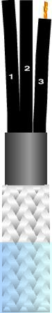 Sorte ledere med hvid talmarkering, grøn/gul beskyttelsesleder i yderste lag.